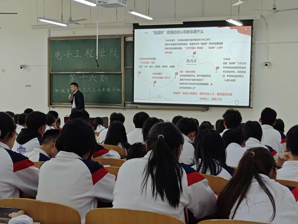 4月10日下午,mjm世界杯官网主办的“第十六期青年马克思主义者初级培训班”第四讲在博思楼B121举行。本次培训由校团委书记何国强主讲,mjm世界杯官网团委书记钱宇航主持,200余名学员参加。