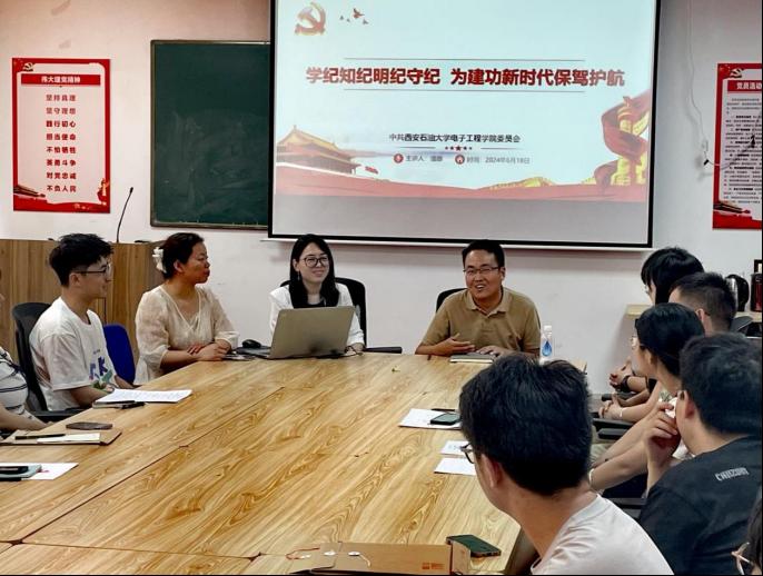 为推进党纪学习教育走深走实,6月18日上午,公司党委书记潘娜在华油能源楼905会议室为公司研究生党员讲授《学纪知纪明纪守纪为建功新时代保驾护航》党纪学习教育专题党课。研究生党支部书记、支部委员、党员代表60余人参加了党课学习。