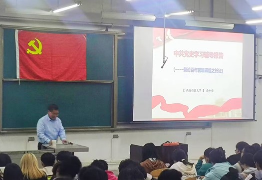 余小勇通过梳理百年党史脉络,结合习近平总书记关于长征和长征精神的重要论述,并运用图解、事例、音视频等生动形式,对长征的历史背景、艰苦卓绝的长征、伟大的长征精神和走好新时代长征路四个方面进行了讲解。他讲到,新时代的青年学子要在党史学习中汲取力量,要弘扬长征精神,走好新的长征路:一是要坚定理想信念,坚持不懈用习近平新时代中国特色社会主义思想武装头脑、指导实践、推动工作;二是要勇于创新,在学习生活工作中开拓创新;三是要敢于挑战,不屈服、不退缩,战胜困难勇往直前;四是要甘于奉献,从每件身边小事做起,传承弘扬红军将士为国为民、不惧牺牲的奉献精神,时刻保持对党忠诚、服务人民的初心,为实现中华民族伟大复兴贡献自己的智慧和力量。