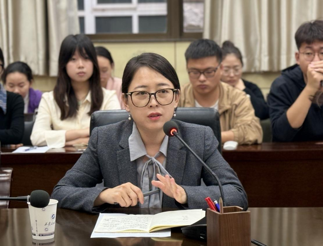 会上,研究生2025级第一党支部书记宋雪娜声情并茂讲述了新中国第一支女子测量队“为国找油”的奋斗故事。与会同志踊跃发言,分享着自己的所感所悟。