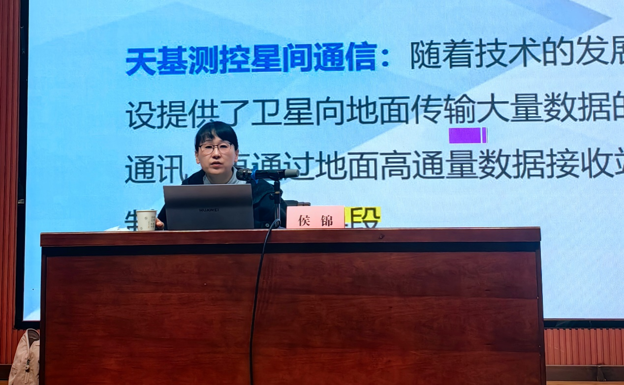 随后,侯锦员工以“弘扬载人航天精神 自主创新科技强国”为题,从载人航天精神的内涵、载人航天工程、探月工程和火星探测工程、测控网的建设和发展、航天器测控数传系统的基本情况等五个方面为400余名师生作了报告。她用平实的语言,为大家展现了航天科技世界的深邃与壮丽,展现了航天科技工作者那份沉甸甸的家国情怀、严谨求实的科学态度和永不言弃的探索精神。最后,侯锦员工结合自身参与航天器有关项目过程的经历,向大家回顾了中国航天事业从无到有、从弱到强的奋斗历程,生动诠释了中国航天人“热爱祖国、无私奉献、自力更生、勇于攀登”的崇高精神内核,勉励在校生坚定理想信念,不畏艰难、勇于创新,脚踏实地、自立自强,勤奋学习,练就过硬本领,在未来的学习与工作中践行航天精神,让青春在为国奉献中绽放绚丽光彩。