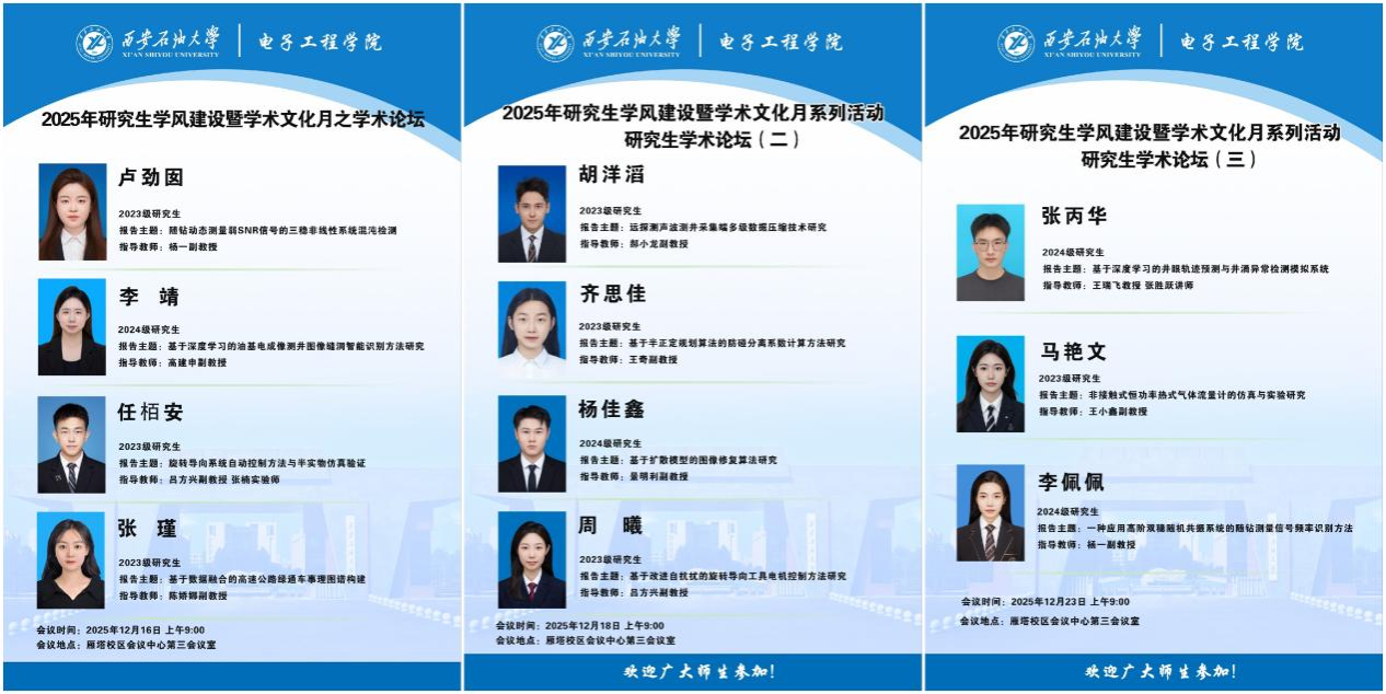 按照公司研究生工作部关于2025年研究生学风建设暨学术文化活动月的安排部署,12月16日-23日,mjm世界杯官网2025年研究生学风建设暨学术文化月之研究生学术论坛在雁塔校区会议中心第三会议室顺利举行。公司副经理杨一、研究生辅导员李君、王晓天以及各年级研究生代表参会,公司11位研究生代表作专题学术汇报。