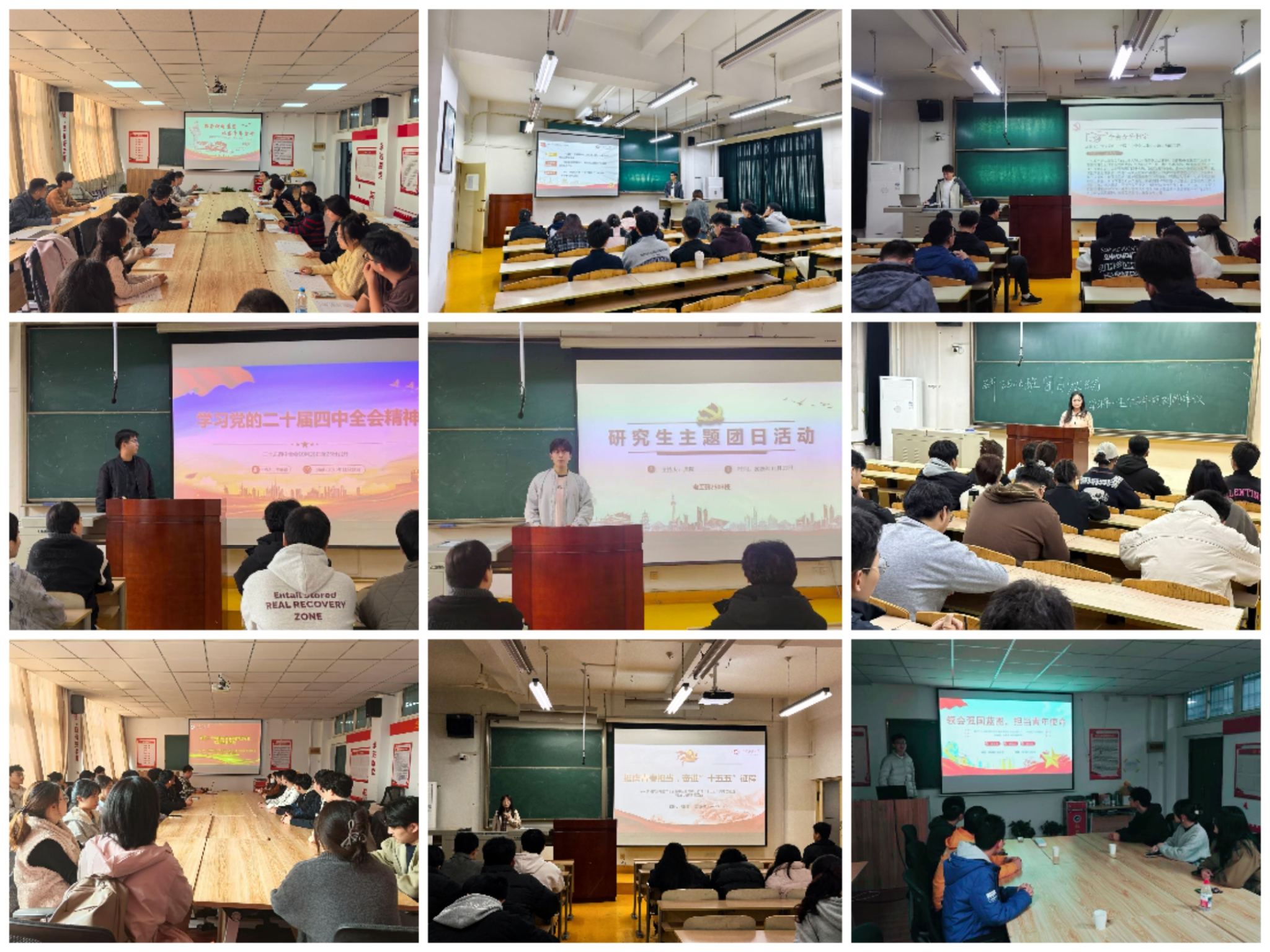 以主题党(团)日活动为载体,11月1日—10日,组织全院18个研究生党(团)支部开展“领会强国蓝图,担当青年使命”主题活动,通过专题学习、主题研讨等形式,将政治理论学习与学科特色、行业使命相结合,引导研究生在筑牢理想信念的同时,明确学术方向与青年担当,形成“党建引领学风、学风促进党建”的良性循环。