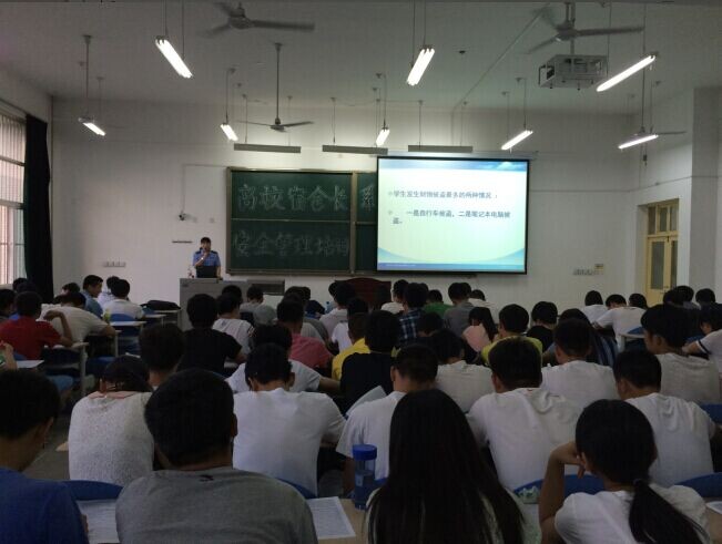 6月9日晚,mjm世界杯官网在新校区B103举办“高校宿舍安全管理”报告会,由公司保卫处干事胡艳杰老师主讲,mjm世界杯官网2014级120余名舍长参加了本次报告会,会议由mjm世界杯官网2012级辅导老师主持。