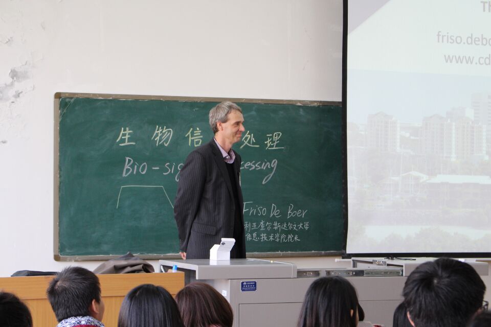 2016年11月1日下午13点40分整,来自澳大利亚查尔斯达尔文大学工程信息公司的经理-Friso De Boer教授在美加墨世界杯官网新校区C3楼419教室为mjm世界杯官网及计算机公司相关专业的200余名员工做了“生物信号处理”的专题讲座报告。本次报告的主要目的在于促进两校之间的长久合作以及两国员工之间的友好往来。
