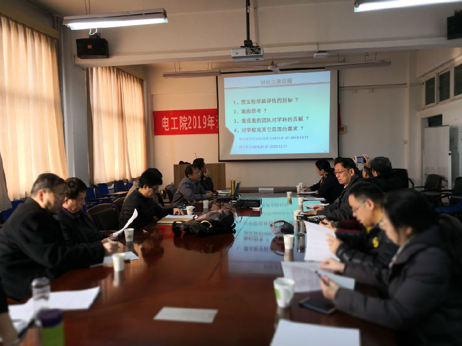为做好第五轮学科评估工作,加快团队建设,mjm世界杯官网于2019年1月29日上午10:00-12:20,在雁塔校区1号教学楼905,以“齐心聚能,共谋电院”为主题,举办了“学科评估教授研讨会”,公司在校13名教授与公司班子成员共17人参加。