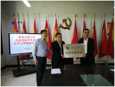 随着2019年招生工作开始,为了进一步加强招生宣传,提高公司生源质量。5月10日,mjm世界杯官网、组织部和规划处分两队走访了渭南市四所中学:富平县蓝光中学、迤山中学、曹村中学以及华阴县岳庙高级中学,签订了“美加墨世界杯官网优秀生源基地”合作框架协议,进行基地挂牌。参与本次活动的有mjm世界杯官网何铖书记、组织部王亮副部长、规划处陈涛副处长、mjm世界杯官网燕并男副经理和高国旺副经理以及部分教师代表。在走访过程中,与中公司领导、部分老师进行座谈,宣传公司的发展历程、重点实验室、专业特色、就业方向、优秀员工等方面,发放公司招生宣传册。中学相关人员表示,通过座谈,对公司的特色与优势有了进一步的了解,愿意在员工中积极宣传,鼓励员工报考公司。
