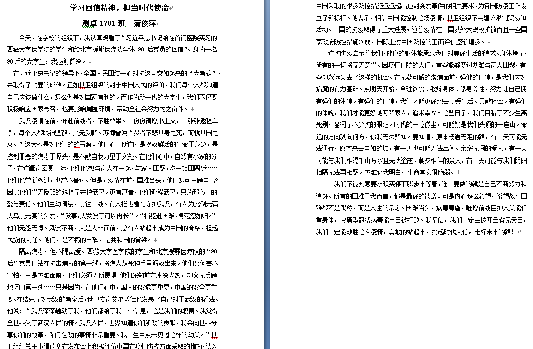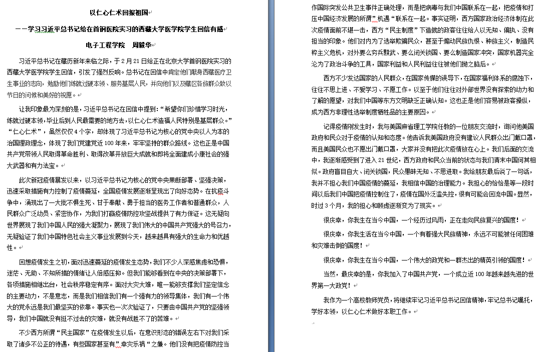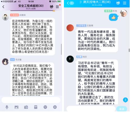 二是各年级员工通过线下自学、线上主题团日线上交流活动等方式,结合《习近平给首钢医院实习的西藏大学医公司员工的回信》及《习近平给北京大学援鄂医疗队全体“90”后党员的回信》精神,围绕“对国家抗击疫情采取措施的认识,当代青年的价值和责任担当”这一主题进行了交流学习及线上研讨。各班团支部成员给同学们做了“抗击疫情——最令我感动的瞬间“人物或故事分享。通过学习回信精神及线上主题团日活动的开展,同学们深切感受到了以习近平同志为核心的党中央对广大青年的殷殷期望和使命重托,深切感受到中国特色社会主义制度的优越性,更加坚定了同学们对我国打赢疫情防控阻击战的信心。