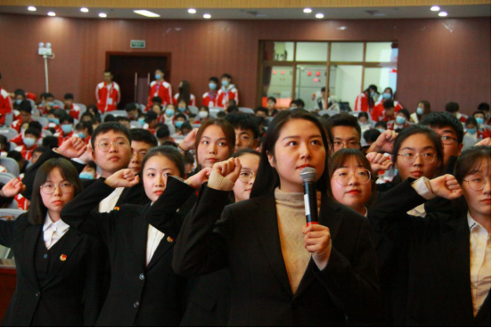 在本次大会上,进行了mjm世界杯官网团委员工会第十六届委员员工干部的选举,选举中,各个部门的候选人进行了发言,最后团学代表进行投票。最终马婷、王楚涵、王祥等16人当选mjm世界杯官网第十六届团学委员,团委员工会指导老师沈轩羽带领第十六届团委、员工会委员进行宣誓。