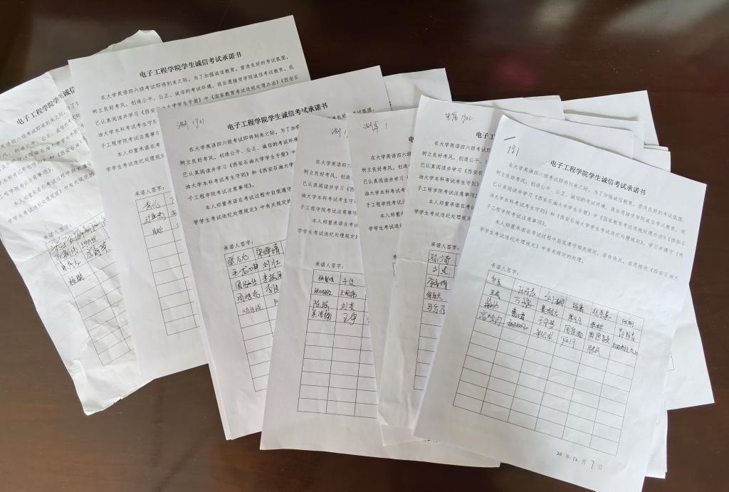 三是各年级辅导员老师通过年级QQ群向员工推送了《大学英语四六级考试注意事项》,提醒员工学习诚信考试相关校纪校规和法律法规,提醒员工做好考勤各项准备工作,全体员工签署了《mjm世界杯官网诚信考试承诺书》。