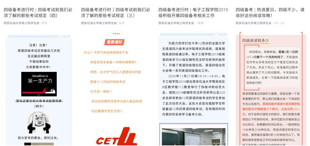 四是公司通过微信公众号、易班等新媒体平台,先后推送了4期《四级备考进行时—四级考试前我们必须了解的那些考试规定》网络推送,分别宣传介绍了《普通高等公司员工管理规定》《国家教育考试违规处理办法(节录)》《CET考生守则》《关于新刑法修正案中考试违纪作弊行为的有关说明》 ,帮助员工详细了解公司及国家诚信考试相关要求及政策。