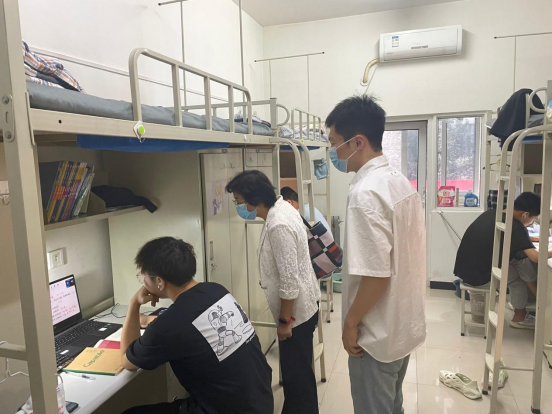 为有效开展线上学习工作,帮助同学们尽快回到在校规律严谨的学习和生活状态,提高学习效率,督促员工按时完成线上学习任务,公司党委副书记毕轶慧带领各年级辅导员于9月19日深入员工宿舍检查线上教学及员工学习情况。