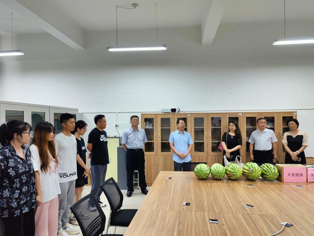 为切实做好今年暑期留校员工工作,进一步了解暑期留校员工的生活情况,坚定同学们的考研和竞赛信心,更好为留校员工提供学习生活条件保障,7月21日,公司党政领导前往鄠邑校区行知楼419考研自习室和逸夫工训楼306亲切看望慰问暑期留校考研和竞赛员工。公司领导与同学们亲切交谈,了解同学们学习和生活上的近况,为同学们在备考过程中带去了解暑水果、饮料、食品等物资,表达了公司对留校员工同学的关心与关爱。