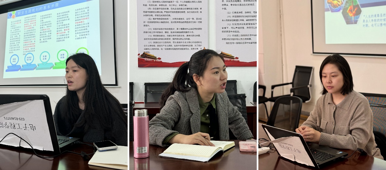 备课会上,明望舒、沈轩羽分别从就业形势与考研形式、就业准备与求职技巧(简历与面试)就教学重难点、教学过程等方面进行了详细的课程设计说课。