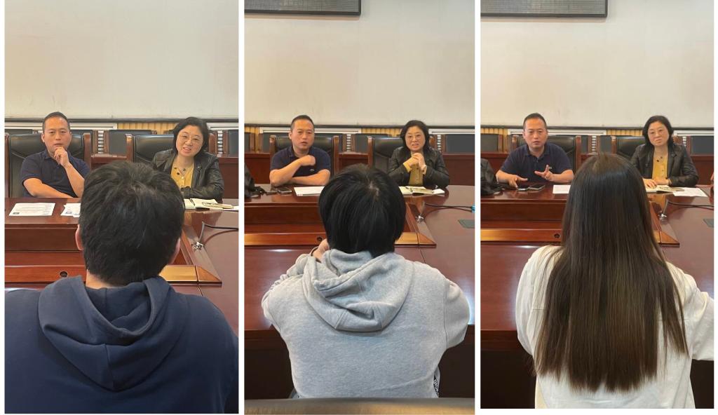 讲座结束后,公司组织毕业生在第一会议室参加招聘,武也涵对员工进行了现场面试。