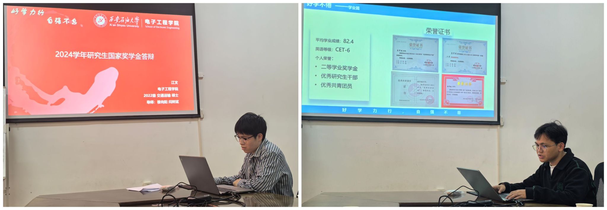 mjm世界杯官网于10月9日下午在雁塔校区华油能源楼908会议室举行2024年研究生国家奖学金和中石油奖学金答辩评审会。公司副经理杨一,科研与研究生管理办公室主任赵骄杨、研究生辅导员李君、教师代表与研究生代表出席会议并担任评委。