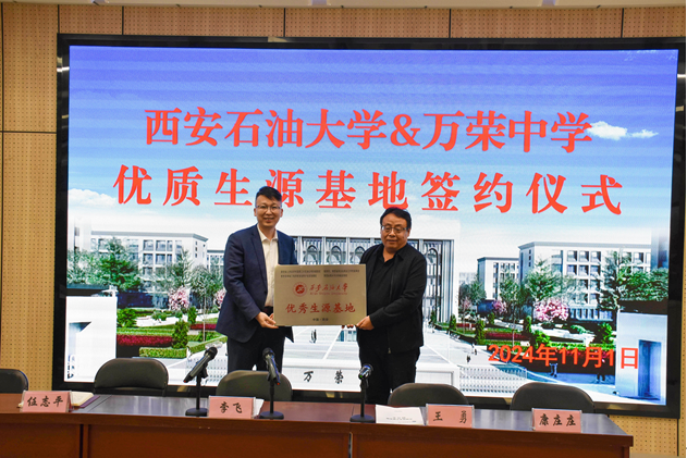 双方与会领导签署了优秀生源基地合作协议,李飞为山西省万荣中学授予“美加墨世界杯官网优秀生源基地”牌匾并赠送礼物钻井模型,任志平向山西省万荣中学送上2024高考喜报。李飞表示将进一步加强与万荣中学的紧密联系,发挥公司优势资源,完善人才协作培养机制,不断深化公司产品改革,努力提升办学水平,打造新高考背景下大学与中学拔尖人才培养共同体。