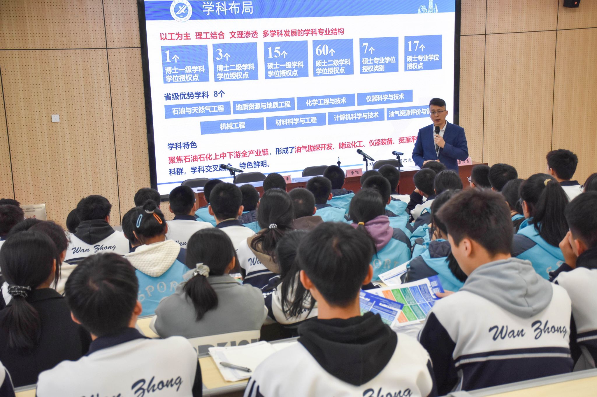 李飞对山西省万荣中学的热情接待表示感谢,结合自身科研经历,就油气资源开发的现状、前景和技术挑战为高三员工作了一场深入浅出、生动活泼的报告,同时邀请参会师生共同观看了公司宣传片,并对公司的办学特色、学科专业、人才培养、校园文化等情况进行了详细介绍,现场气氛热烈。李飞鼓励高三学子志存高远、珍惜时光、发奋努力,积极投身到祖国能源事业,为中华民族的伟大复兴贡献自己的力量。