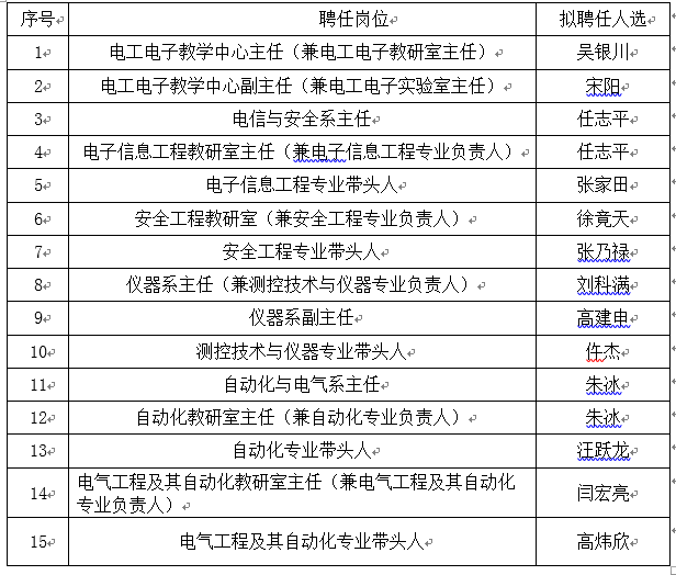经过各系(教研室)推荐、个人报岗、资格审查、系(教研室)教师民主选举,公司党政联席会研究,拟聘以下教师担任系、教研室主任和专业带头人,现公示如下: