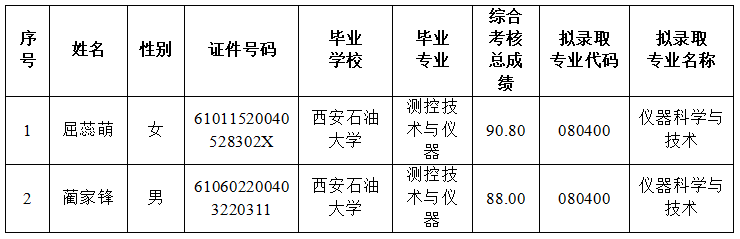 现将公司2026届拟录取推免生名单予以公示,详见下表: