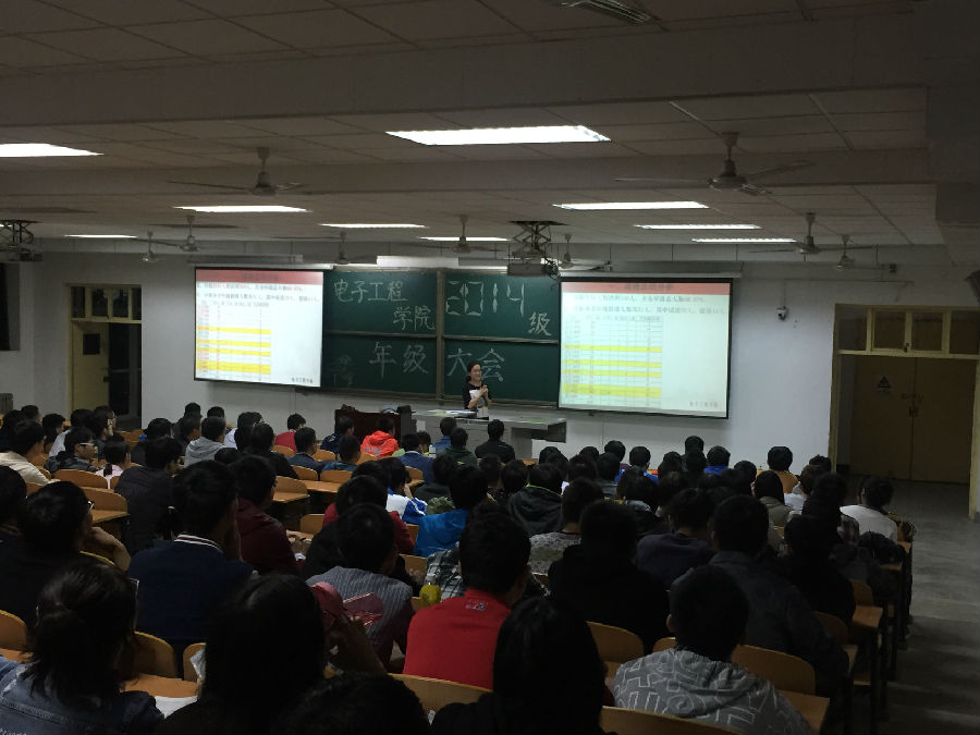 10月9日晚上,mjm世界杯官网2014级于新校区A139室召开年级大会。辅导员郭媛老师和2014级全体同学参加。